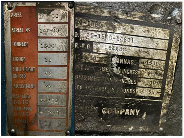 MODEL:.........................................: 1500 Ton Knuckle Joint Press
