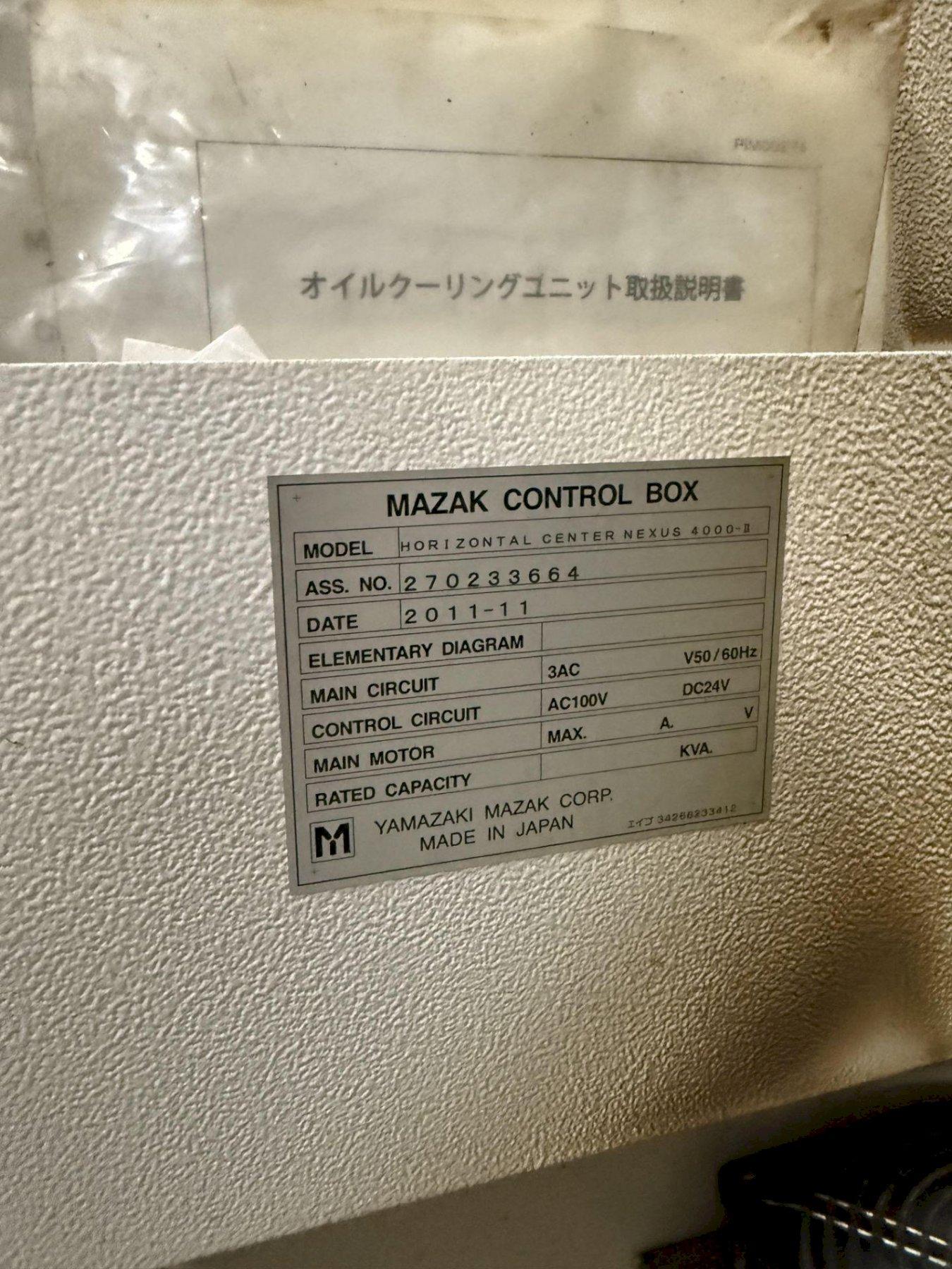 Mazak Nexus 4000-2 CNC Horizontal Machining Center. Year 2011, Serial #233664.